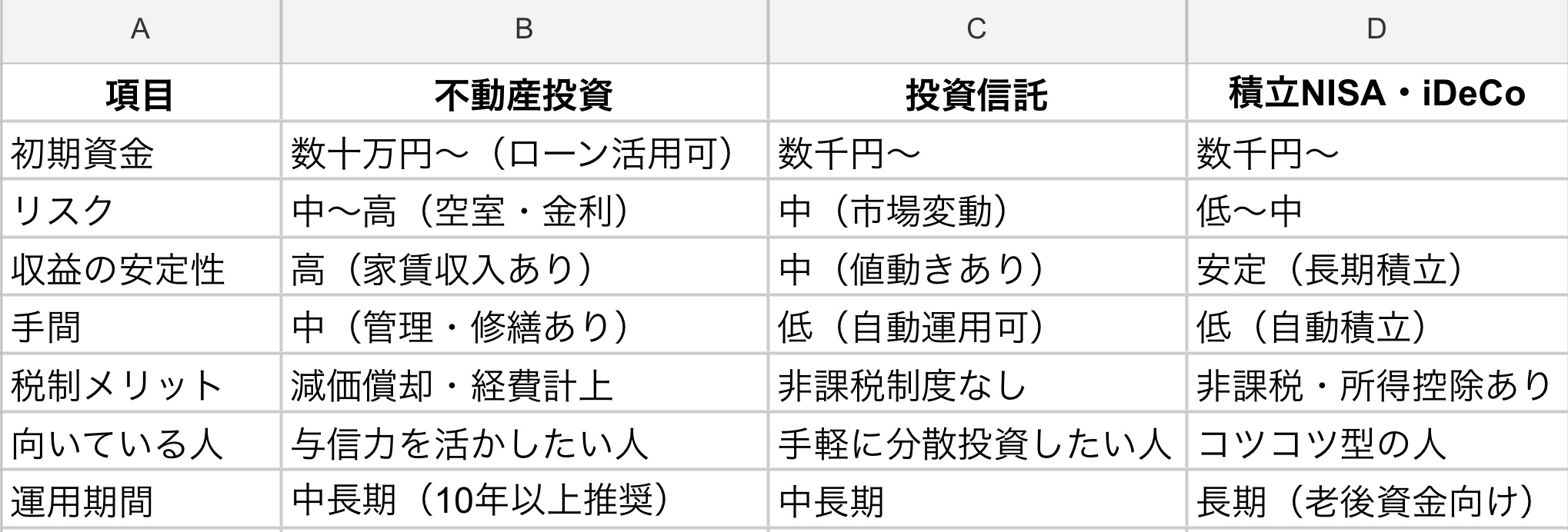 4. 不動産・投資信託・積立の比較と選び方
